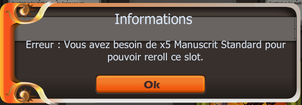 Chaque reroll coutera de plus en plus chère et demandera 1 <mark style="color:red;">**Manuscrit Standard**</mark> supplémentaire, par rapport à la tentative précédente.