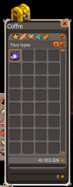 En cliquant sur l'icône, votre coffre s'ouvrira, vous pourrez déposer des gemmes à l'intérieur pour obtenir un boost de statistique